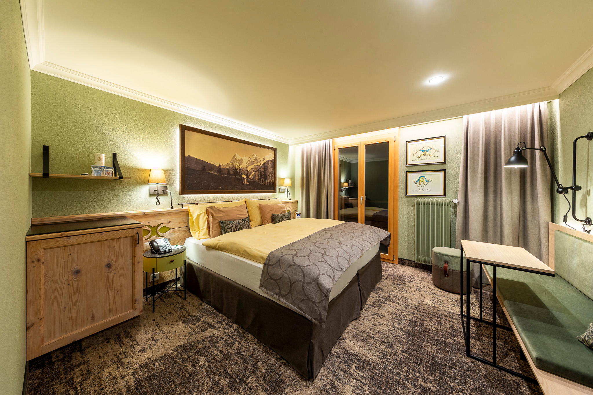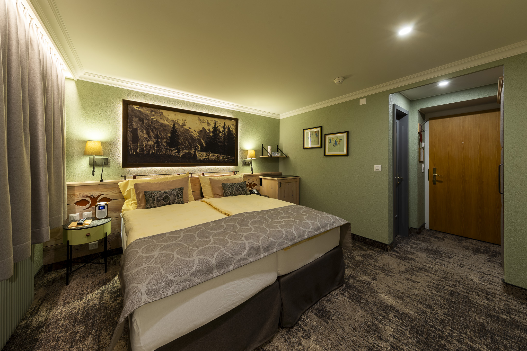 Ein paar Elemente der bestehenden Möblierung sind übernommen und mit neuen Möbeln erweitert und ergänz worden. Mit dem neuen Beleuchtungs- und Materialkonzept wirken die Zimmer hell und freundlich, dass man die einzigartige Aussicht auf den Eiger schon fast vergisst. Die Eröffnungstermine waren bereits vor dem Baustart definiert, was die Zeit zu einem spannenden Gegner machte. Dank der guten Zusammenarbeit mit den einheimischen Gewerben sind diese Herausforderungen zu meistern gewesen.