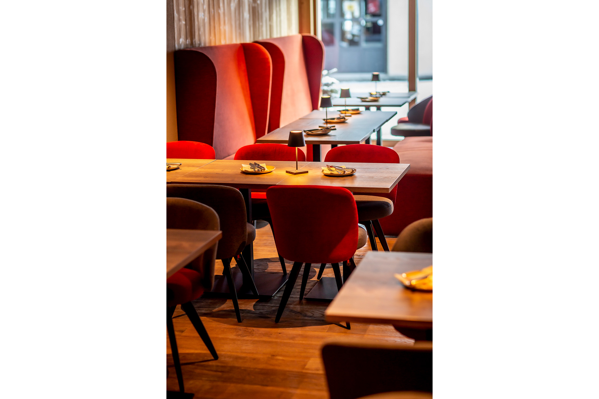 Der vordere Teil des Erdgeschosses im Hotel Eiger wurde bis auf den Rohbau komplett entkernt und sämtliche Haustechnikinstallationen teilweise umgelegt oder ersetzt. Neben dem neuen Eingangsportal, Fensterfront und Frühstücksbereichs wurde die Terrasse sowie das Restaurant Barrys neugestaltet, den Brandschutzauflagen Rechnung getragen und Fluchtwege bereinigt.