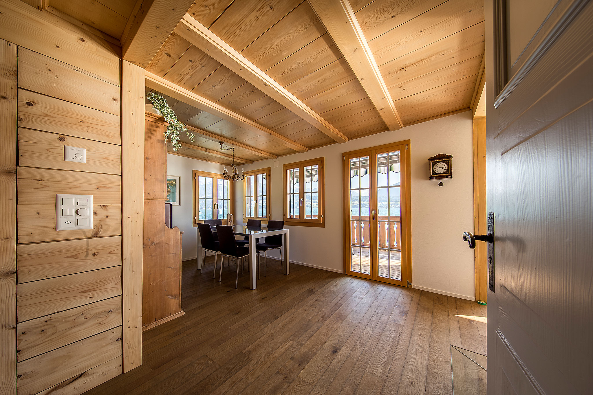 Das in die Jahre gekommene Chalet direkt am Thunersee genügte den heutigen energetischen sowie ästhetischen Ansprüchen nicht mehr. Neue Fenster, Chemineeanlage, eine topmoderne Küche sowie ein neugestaltetes Bad lassen zusammen mit neuen Bodenbelägen und aufgefrischten alten Holzwänden das alte Chalet mit viel Charme und Ambiente in neuem Glanz erscheinen. In einem weiteren Schritt wurden einzelne Fassadenteile saniert sowie ein neuer Anlegeplatz realisiert.