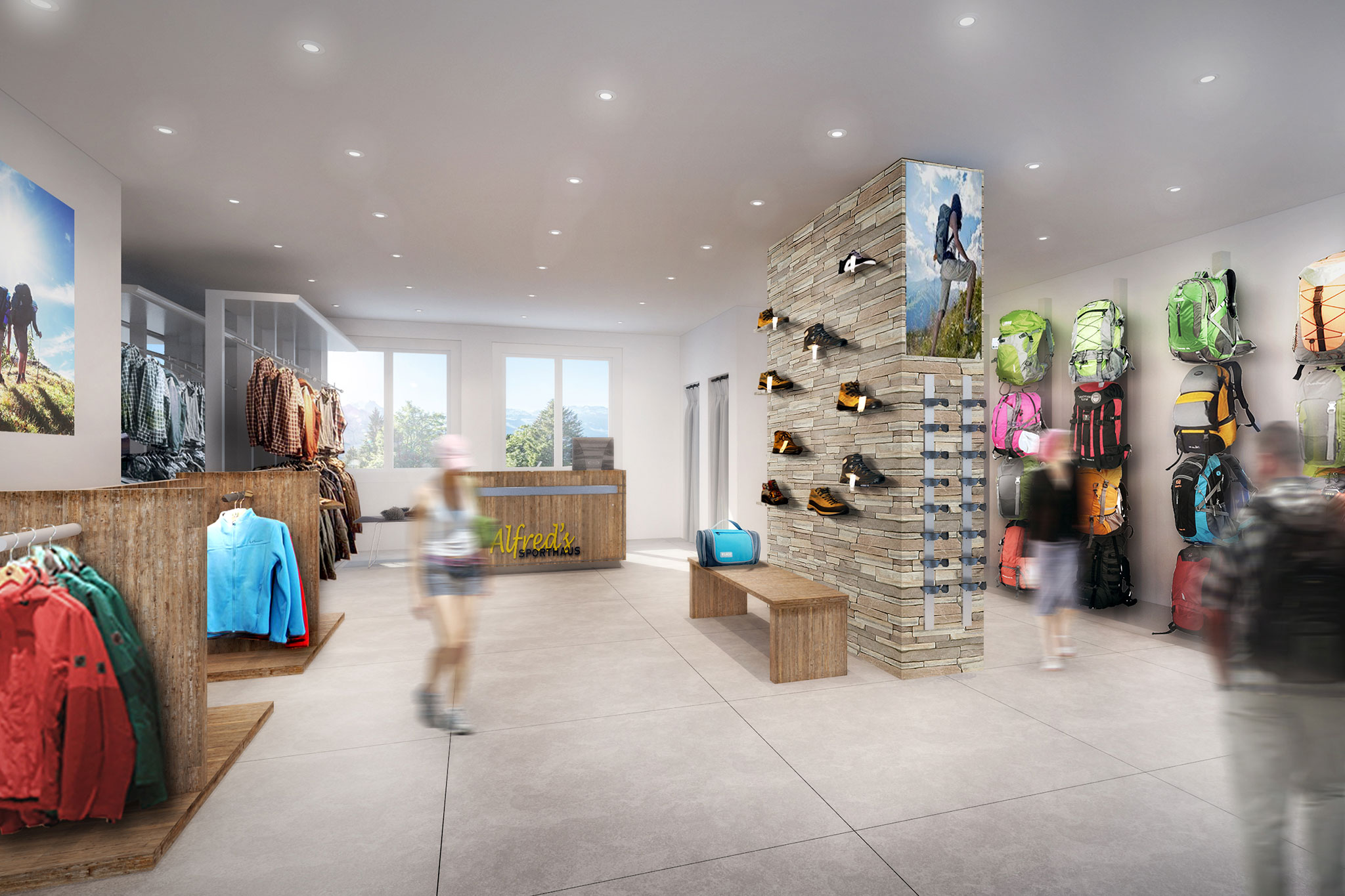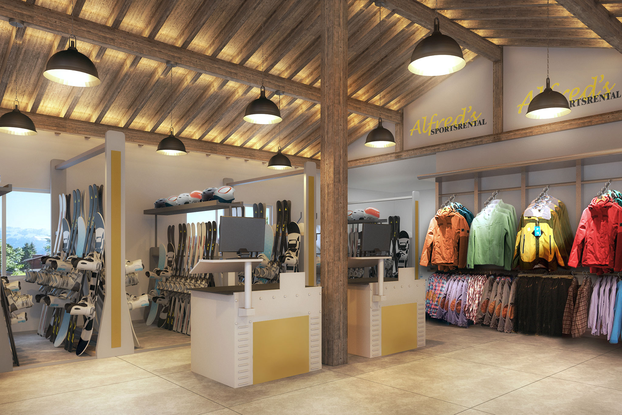 Das in die Jahre gekommene Sporthaus in Mürren soll erneuert werden. Untergeschoss und Erdgeschoss werden dadurch massiv umgebaut um den Verkauf und Vermietungsbereich in neuem Glanz erstrahlen zu lassen. Das bestehende Chalet (1. & 2. OG) befindet sich in einem desolaten Zustand und ist nicht mehr bewohnbar. Ein Neubau soll in den gleichen Gebäudeabmessungen wieder Platz finden. Die traditionellen Charakterzüge des Chaletbaus dienten als Grundlage für das äussere Erscheinungsbild.