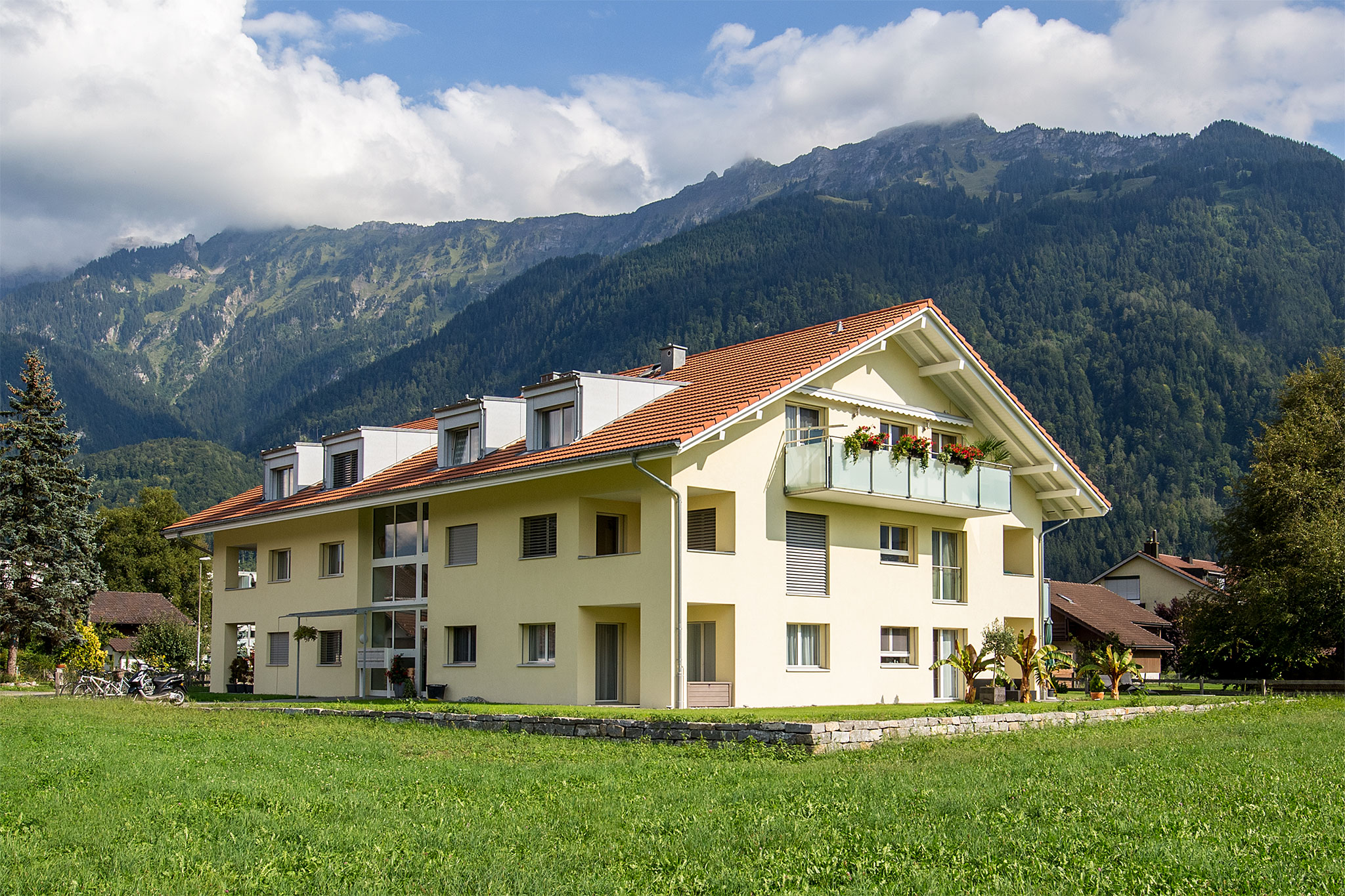 An der Aenderbergstrasse in Matten entstand ein Mehrfamilienhaus mit Eigentumswohnungen. Der Wohnraum ist überdurchschnittlich gross und verfügt über einen hohen Ausbaustandard. Das Untergeschoss bietet neben Einstellhalle, Veloraum und Keller jeder Wohnung genügend Platz für eine eigene Waschküche. Die umweltschonende Fernwärmeheizung und die Gebäudehüllendämmung nach den aktuellen Anforderungen der kantonalen Energieverordnung unterstützen das ökologische Gesamtkonzept.